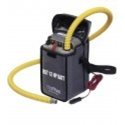 Régulateur de pression intégré. Fonctionne sur batterie 12 V. Débit compr. : 150 L/ min. Débit turbine : 450 L/min. Sécurité : arrêt automatique dès la pression cible atteinte. Compresseur présenté dans une housse de transport. |