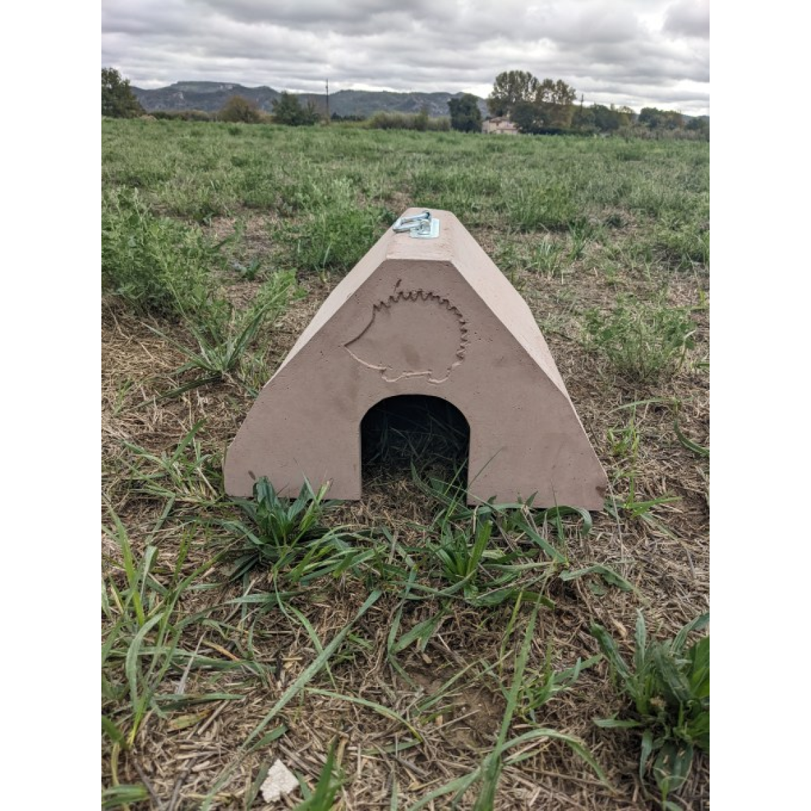 Ce gîte en béton de bois pour hérisson peut-être installé dans votre jardin, dans un parc ou dans une forêt. . Ce gîte se transporte facilement grâce à sa poignée.