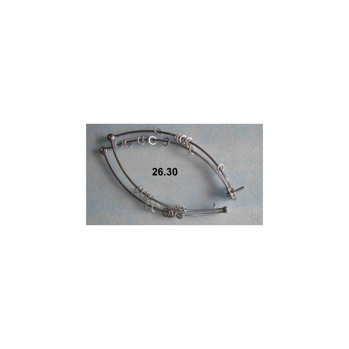 Armature légère pliable de quatre pièces en rondin d'acier, l'armature inférieure en fibre de nylon épais est accrochée sur les 30 anneaux, traitement de surface zingage, filetage M6. Possibilité d'utiliser avec les manches en stratifié et manches en alliage d'aluminium.